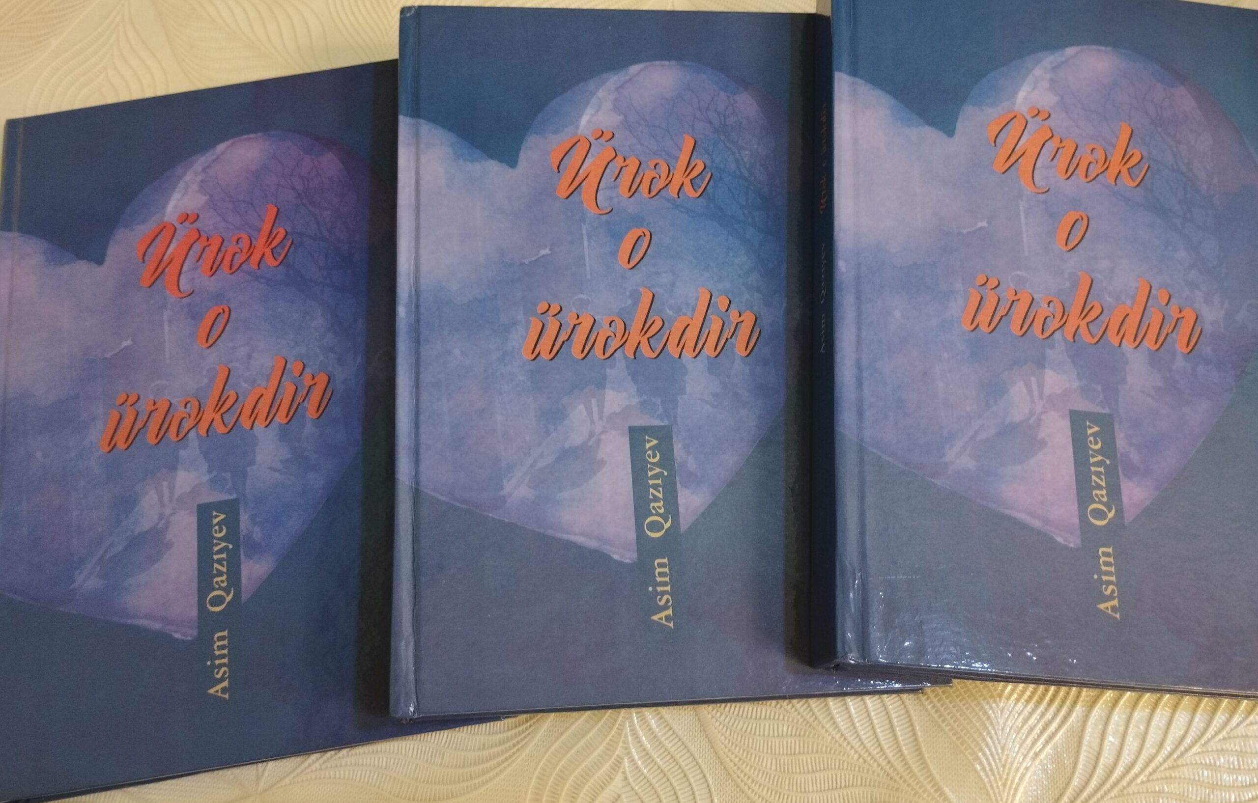 Atamız, şair, pedaqoq Asim İsa Çələbi oğlu Qazıyevin dördüncü kitabı çapdan çıxıb. Qardaşımın sayəsində. Ötən ildən bu gün, sabah adıyla yol gələn kitab əlimizdədir. Qardaşım bütün kitabların hər əziyyətini çəkib. Hətta birinci kitabın nəşriyyat xərcini iki dəfə ödəyib. “Qələmin qüdrəti yaz, deyir mənə”, “Xeyli sözüm var”, Ürəkdən soruş”, “Ürək o ürəkdir”. Kitabların adını biz seçmişik. Söz, ifadə, fikir, misra atamızındır. “Ürək o ürəkdir”in adında mən bir az qərarsız qaldım. “Ürəkli” kitab vardı deyə. Qardaşımsa bu ürək, o şeirləri yazan həmin ürəkdir, eyni ürəkdir-dedi. Beləcə ad seçildi.